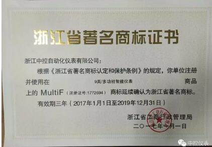 近日,中控MultiF商標(biāo)延續(xù)確認(rèn)為浙江省著名商標(biāo)。并獲得證書。MultiF商標(biāo)是我公司最主要的產(chǎn)…